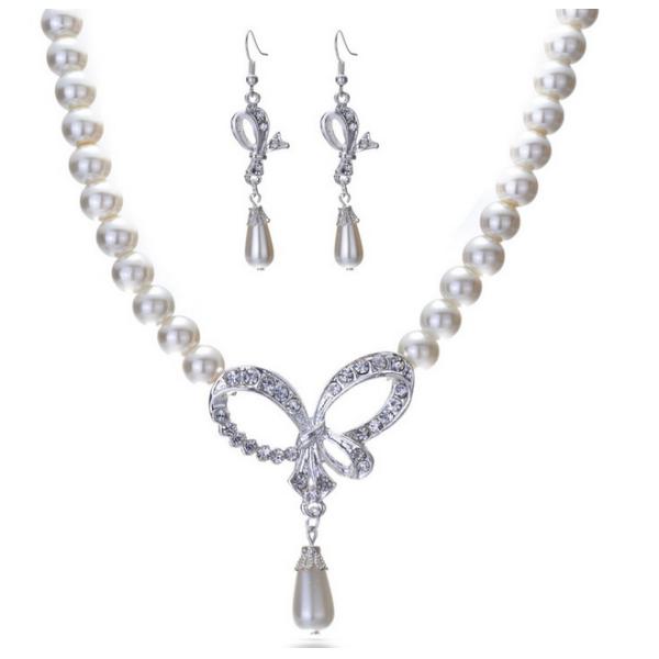 Irregular pearl necklace jewelry hollow diamond bow pendant necklace Images |